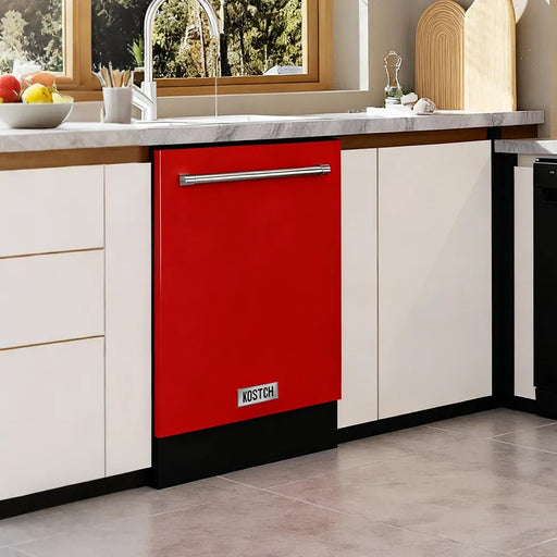 View full detailsThe Kostch 24-inch Top Control Built-In Dishwasher (Model KOS-24DWH06H-R) combines powerful cleaning and quiet performance with a bold red stainles...