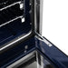 Below, the 5.36 cu. ft. convection oven uses a fan-assisted heat circulation system with a blue enamel oven interiorand a 3-layer insulated glass oven door for improved heat retention and visibility. The oven produces up to 30,000 BTUtotal broil and bake output and includes two heavy-duty stainless steel telescopic oven racks for easy access.