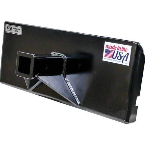GreyWolf 2‑In Receiver Hitch Plate for Mini Skid Steer Loaders – Black Powder Coat, Universal Quick Attach Plate