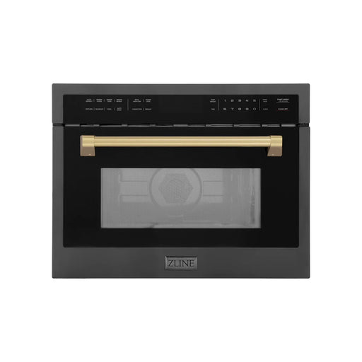 ZLINE MWOZ-24-BS-G Autograph Edition 24 in Built-In Convection Microwave Oven, 1.6 cu ft, Black Stainless Steel with Polished Gold Accents