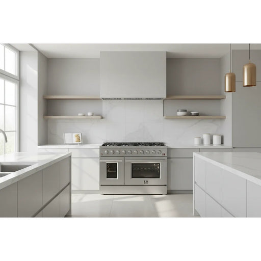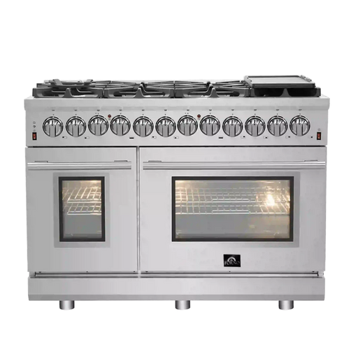Forno Massimo FFSGS6125‑48 48" Stainless Steel Dual Fuel Range, 8 Sealed Burners, Double Ovens, True Convection
