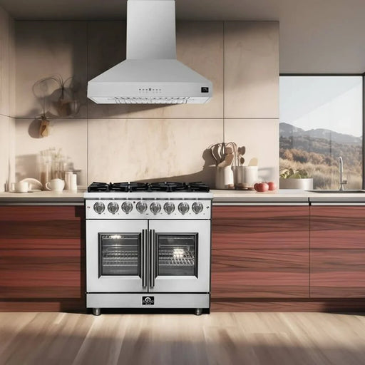 Forno Massimo FFSGS6439-36 36" Stainless Steel French Door Gas Range, 6 Sealed Burners, 5.36 cu. ft. Convection Oven