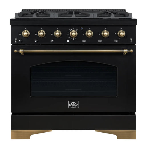 Forno Massimo FFSGS6125-36BLK 36" Black Dual Fuel Range, Antique Brass, 6 Sealed Burners, 5.36 cu. ft. True Convection Oven
