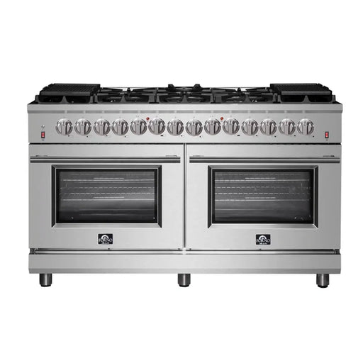 Forno Massimo FFSGS6125-60 60" Stainless Steel Dual Fuel Range, 10 Sealed Burners, Double True Convection Ovens