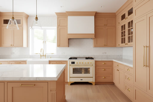 Ilve UM09FDNS3AWB Majestic II 36-Inch Freestanding Dual Fuel Range with 6 Brass Burners, Griddle, European Convection Oven, Antique White with Bronze Trim