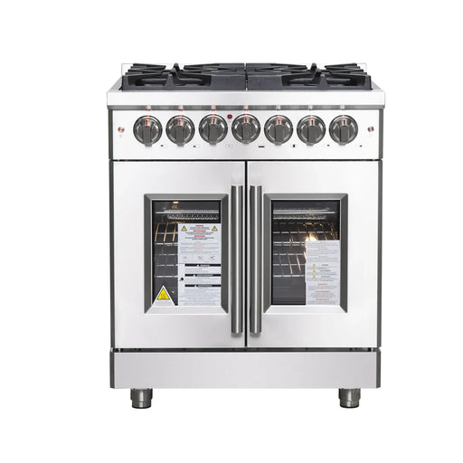 Forno Massimo FFSGS6439-30 30" Stainless Steel French Door Gas Range, 5 Sealed Burners, 4.32 cu. ft. Convection Oven