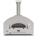 The powerful gas burner produces 24 kW (≈ 83,000 BTU/h) and supports both liquid propane (LPG) and natural gas. For added versatility, the oven is compatible with Alfa’s optional Hybrid Kit, allowing you to switch to wood-fired cooking when desired. A glass door provides clear visibility while maintaining temperature, and a built-in analog thermometer offers precise heat monitoring.